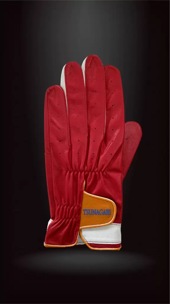 ベースに[レッド]、指股とベルトに[ホワイト]、パイピングとフェイスに[オレンジ]、刺繍に[ブルー]を配しました。力強さと清らかさ、温もりと信頼感が響き合い、節目を迎える方の手元に確かな誇りをもたらします。